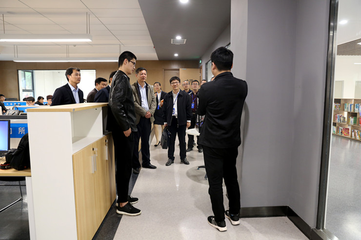 专家组到校后,在副董事长吴益民、校办主任朱永恒和双创公司经理王铮的陪同下,首先考察了公司的创新创业场地。