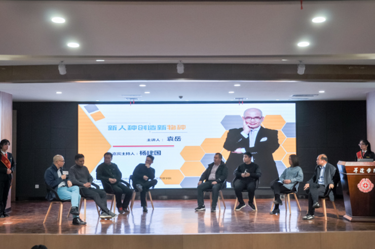 讲座结束,进入对话环节。在杨建国先生的主持下,袁岳博士,孙攀峰、袁宁、周延翟、魏斌、苗国军五位优秀员工,高允浩、李瑶两位员工代表上台落座,共言老员工创新创业话题。各位员工根据各自不同的创业实践经历,结合本次活动主题,对“新人种”、“新物种”观点提出关心的问题,袁岳博士对员工们的问题均一一给予专业解答。