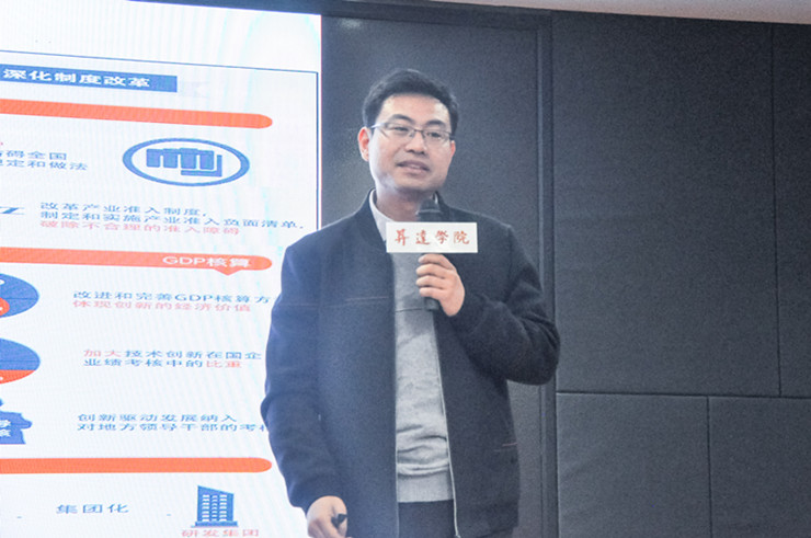 海龙教授以《老员工创新创业大赛分析与解读》为主题开展了一场别开生面的专题报告。海龙教授首先从老员工创新创业大赛切入,解读了大赛背后“大众创业、万众创新” 的时代趋势和创新驱动发展的国家战略。然后,结合大赛案例,从创业团队组建、创业项目选择和创业资源整合等方面对大赛给出了具体指导意见。