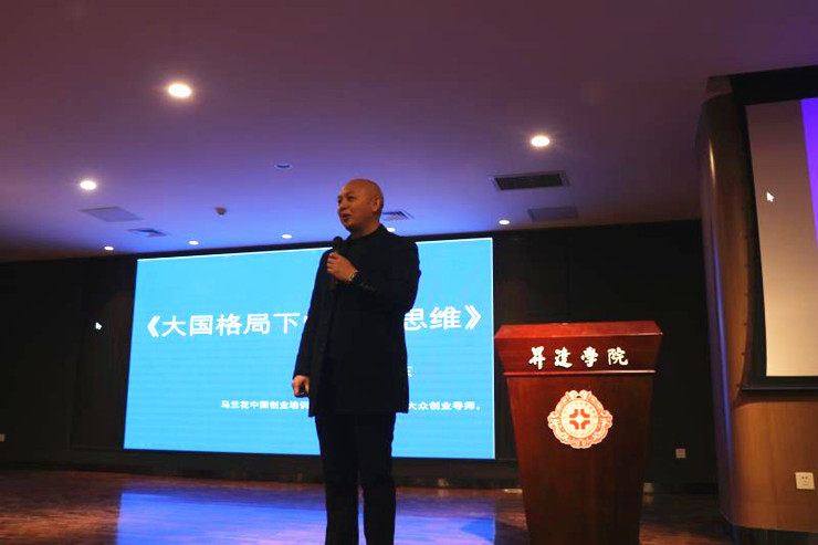 2019年12月27日,马兰花中国创业培训项目培训师、河南省大众创业导师丁向东老师莅临公司,在双创大讲堂做主题为《大国格局下的创业思维》的报告。金贸公司师生代表近200人聆听了报告。讲座由365VIP英国上市官网彭凯老师主持。