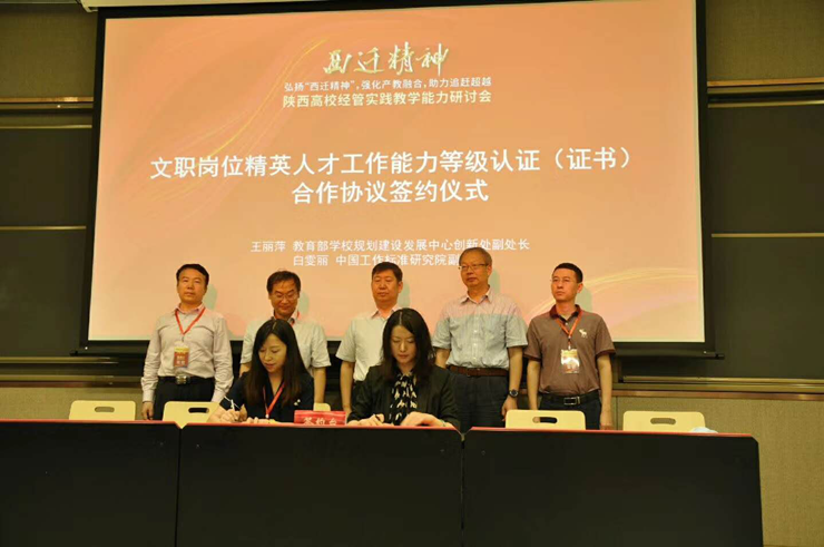 本次会议,教育部公司规划建设发展中心与中国工作标准研究院就文职岗位精英人才工作能力等级认证(证书)举办了合作协议签约仪式。教育部公司规划建设发展中心创新处副处长王丽萍与中国工作标准研究院副经理白雯丽作为双方代表签字。本次签约为首批入选教育部公司规划建设发展中心科学工作能力提升计划(百千万工程)项目的公司升达圆通科学工作院开展岗位精英人才培养提供了强有力的保障,有利于提升公司应用型人才的培养质量。