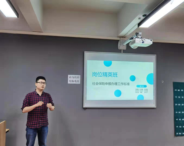 此次活动以讲课比赛的形式开展,岗位精英班全体员工参加比赛。首先,朱阳昱老师对翻转课堂意义进行说明,其次,讲到比赛的目的不仅是检验本学期教学成果,更是为了丰富课堂形式,实现多样化教学。此次比赛按照抽签的方式进行,四个小组分别选派参赛选手,员工选择已学习的岗位工作标准进行讲解,限时15分钟。教师根据员工讲解情况进行打分点评,并对教学内容进行延伸与总结。