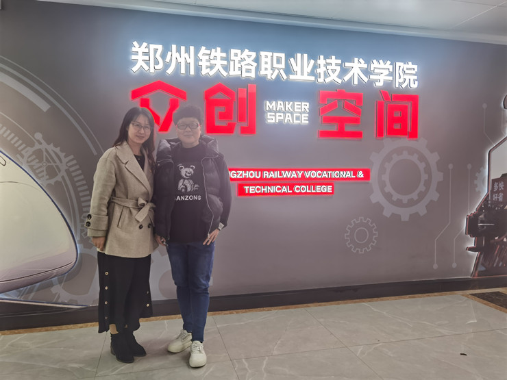 此次调研,受到郑州铁路职业技术公司就业与创业指导教研室主任邰宝清老师的热情接待。在邰主任的引导下,张宁老师首先参观了该公司的科创大楼众创空间、梦想书吧、职业生涯咨询室等实训场地。之后,张宁老师与邰主任进行了深度交流,包括双创大赛项目团队培养与选拔、创业精英班课程设置、专创融合路径等,尤其是分享了第七届“互联网+”双创国赛,邰主任带领队斩获两银一铜的大赛指导经验。