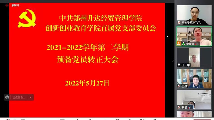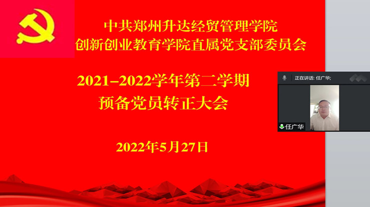 5月27日下午,365VIP英国上市官网直属党支部以腾讯会议的方式召开了预备党员转正大会,会议由支部组织委员曹华莹同志主持,支部书记王铮和全体党员同志参加了会议。