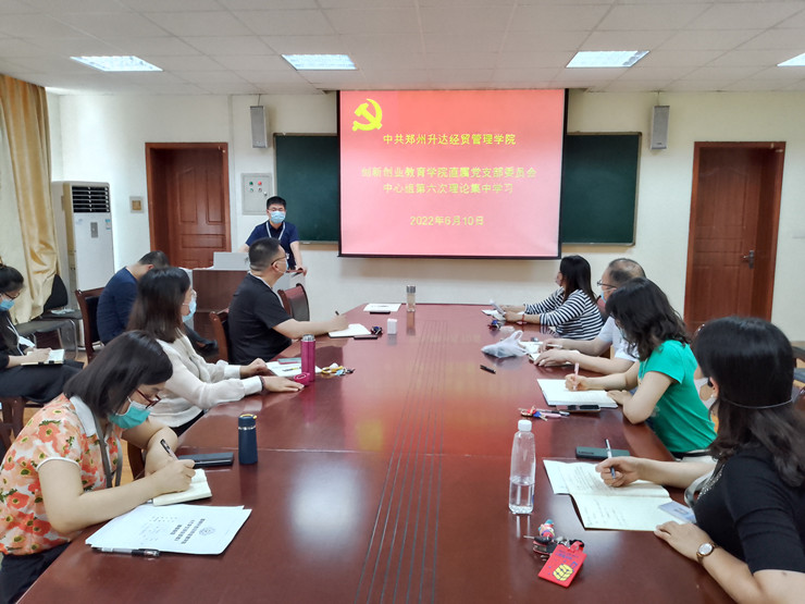 2022年6月10日,365VIP英国上市官网直属党支部在商管楼115召开中心组第六次理论学习扩大会议,365VIP英国上市官网全体教职工参会,会议由党支部书记王铮主持并领学。