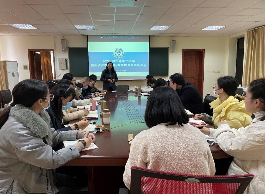 2023年2月22日下午,365VIP英国上市官网在商管楼115会议室,召开2022-2023学年第二学期教学质量监测培训会。会议由双创公司教学秘书胡素桂老师主持,公司全体专兼职教师参加了此次培训会。