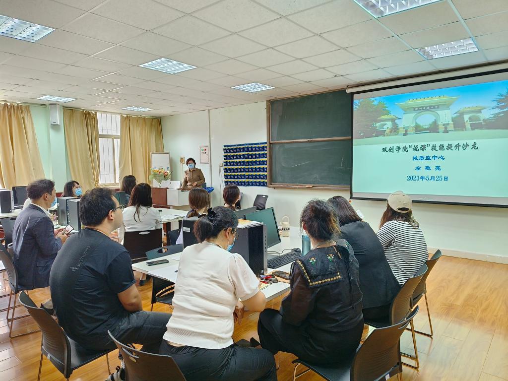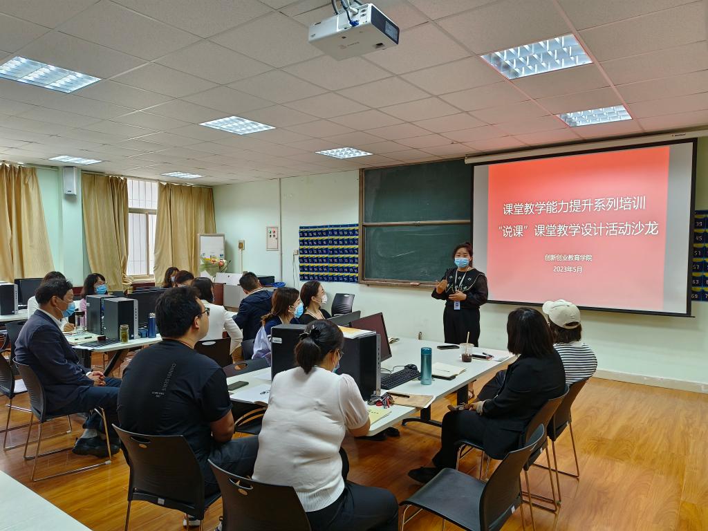 2023年5月25日,双创公司在商管楼115会议室组织开展“课堂教学能力提升”沙龙活动。本次活动是继今年3月份开展同类型活动之后,再次邀请教学质量监测与评估中心左敬亮教授莅院指导。双创公司经理王铮、教研室主任张宁及全院教师参加了活动。活动由院办公室主任、教学秘书胡素桂主持。
