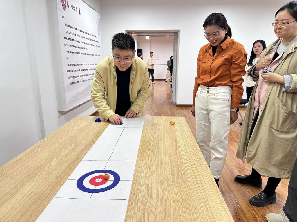 活动设置了纵横天下、穿越雷阵、桌面冰壶3个项目,将竞技与趣味融合,既有速度力量的比拼,也有团队协作的较量。老师们各个斗志昂扬,摩拳擦掌,全身心投入到活动中,现场笑声、加油声此起彼伏,气氛十分热烈。