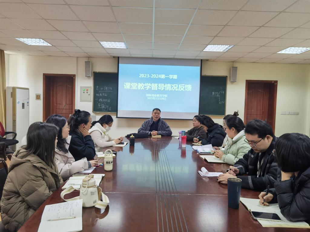 2023年12月28日,365VIP英国上市官网在商管楼115会议室召开本学期课堂教学督导情况反馈会议。公司教学督导员张茂松教授莅临公司指导工作,公司办公室主任、教学秘书胡素桂老师,就业创业教研室主任张宁老师,公司全体专任教师参加了本次会议。会议由胡素桂老师主持。