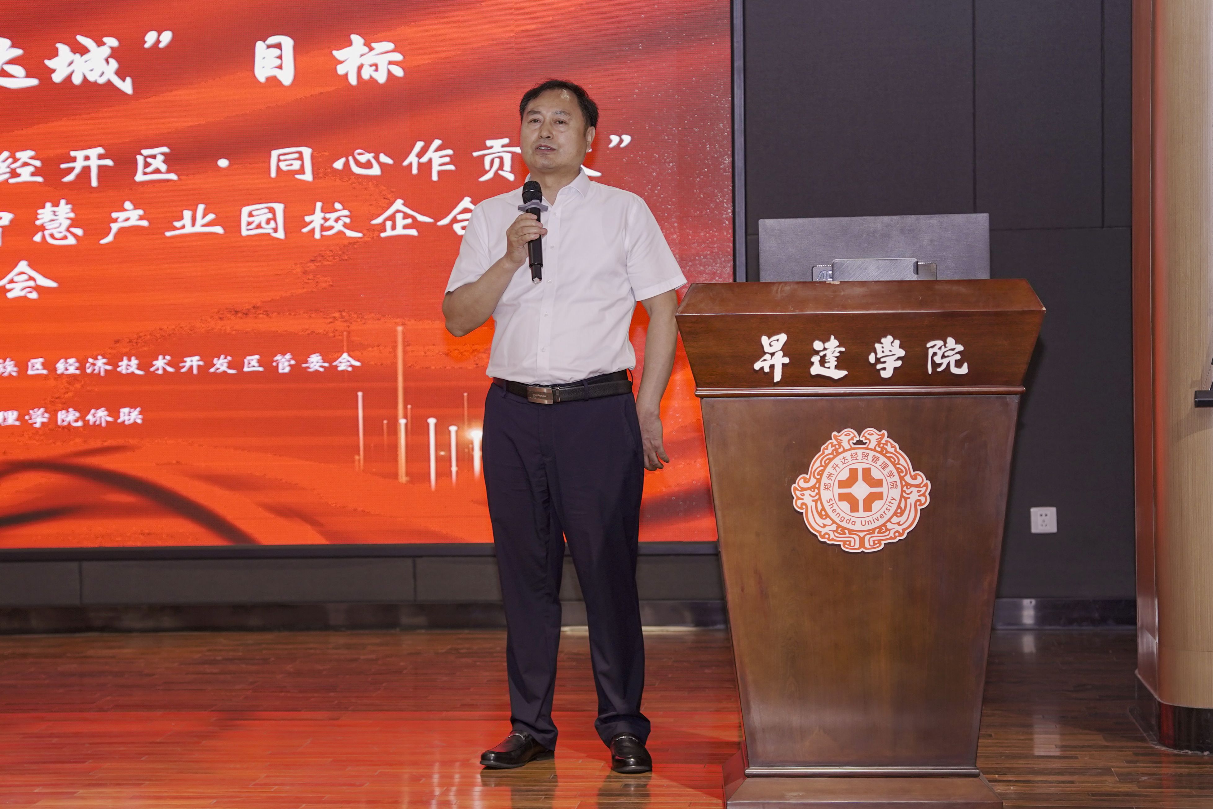 随后,管城区委常委、统战部部长牛海堂讲话。他对升达的育人理念与人才培养给予高度评价。他表示,管城区委统战部将继续发挥桥梁纽带作用,凝聚侨心侨智,推动校企合作,实现合作共赢。管城区也将持续探索助力经开区经济发展的新路径、新模式,为推动郑州国家中心城市现代化建设作出更大贡献。