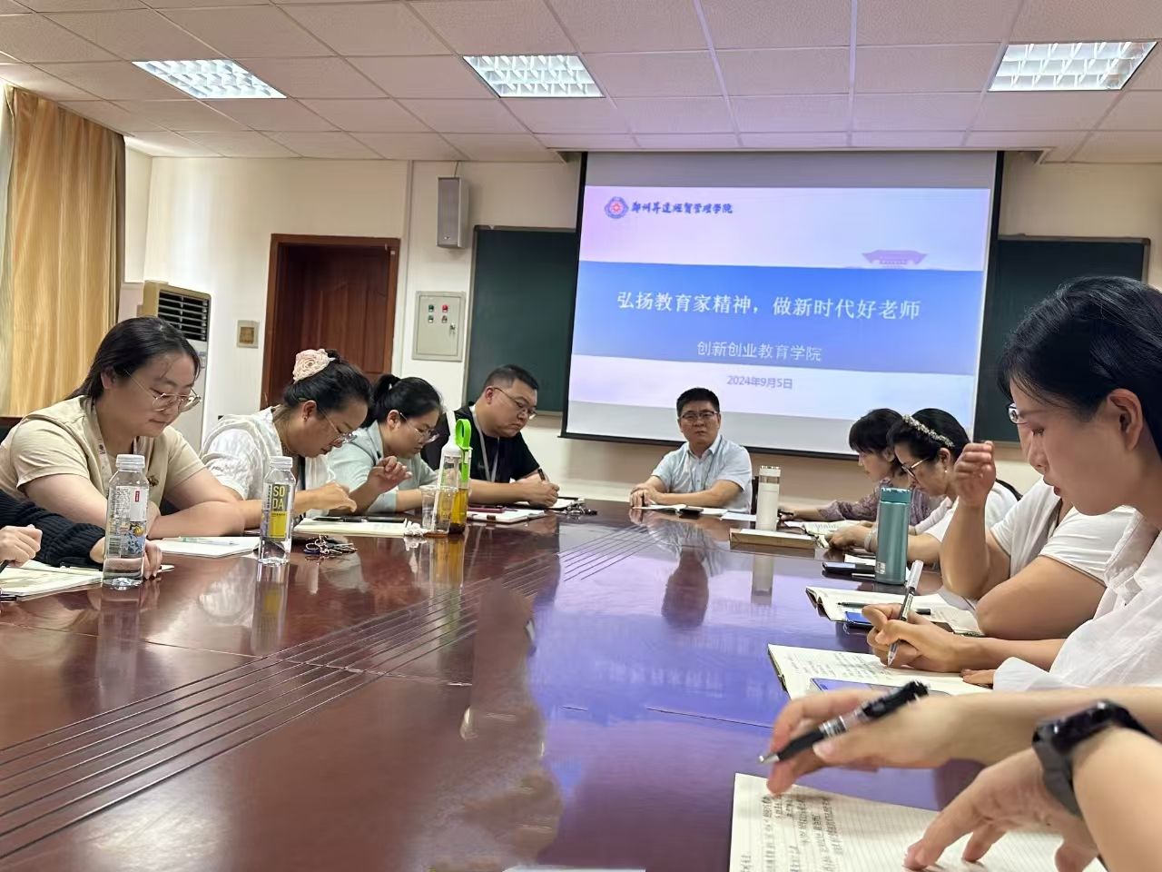 为进一步强化师德师风建设,提升公司全体教师的思想道德水平,365VIP英国上市官网于2024年9月5日下午在商管楼115会议室举办了弘扬教育家精神专题学习活动。此次会议由双创公司经理王铮主持,全院教职工参加了本次会议。