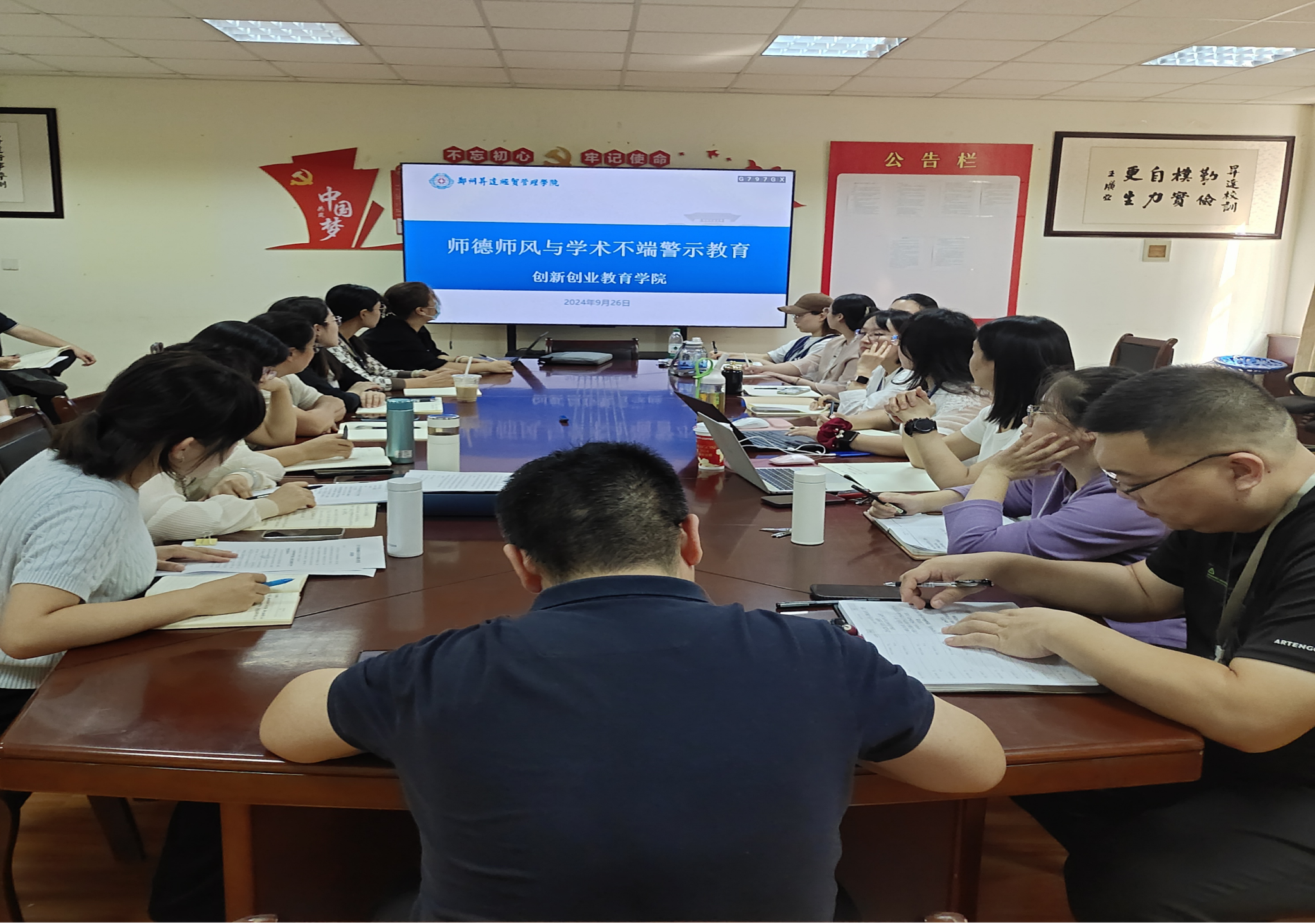 为进一步落实公司师德师风建设工作部署,严格规范教师学术行为,2024年9月26日下午,365VIP英国上市官网在商管楼115会议室召开师德师风与学术不端警示教育专题会议,此次会议由公司教学秘书赵艳娜主持,双创公司经理王铮及公司全体教师参会。