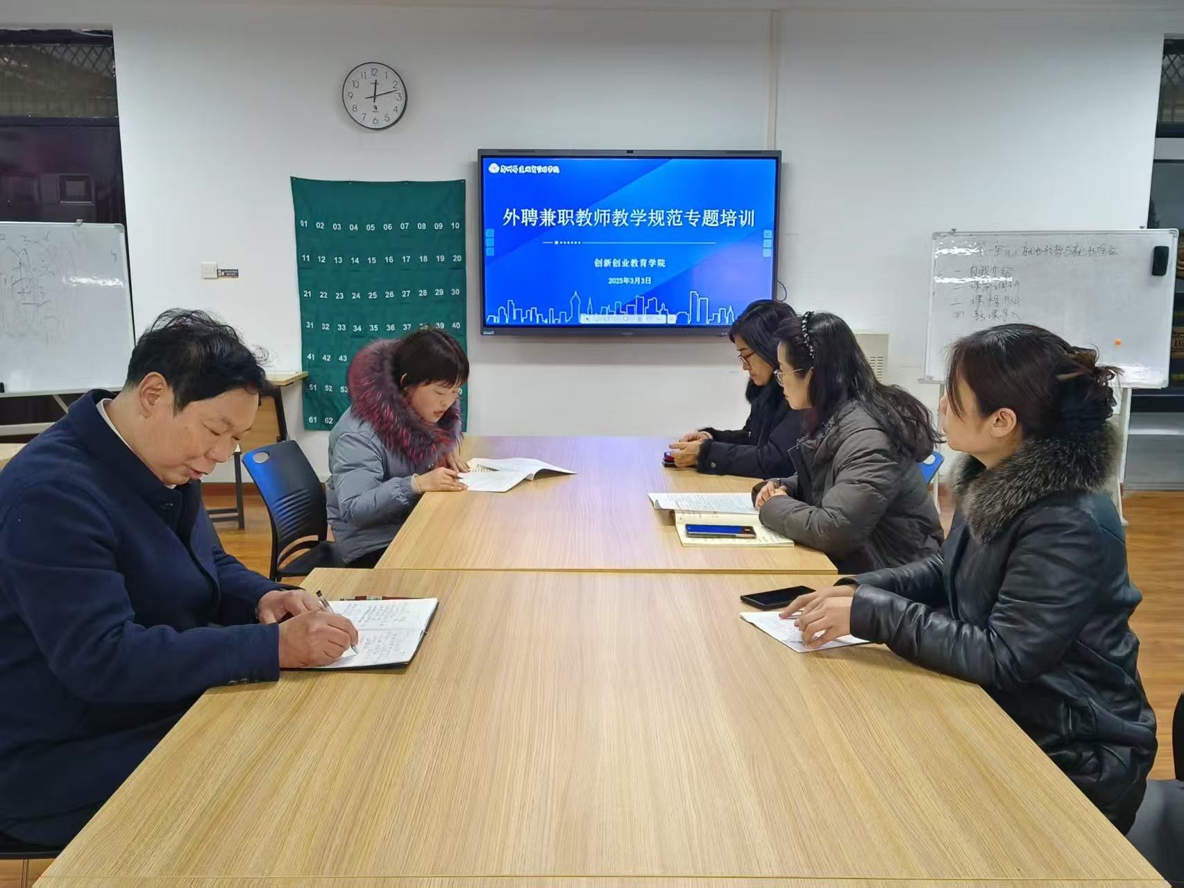 会上,教研室主任张宁结合教育部《新时代高校教师职业行为十项准则》,强调教师应严守师德底线,注重言传身教,将思政元素融入双创课程,落实立德树人根本任务。教学秘书赵艳娜系统解读了《外聘教师管理办法》以及教学事故认定相关制度,重点说明课堂考勤、调停课流程及教学材料归档要求,明确教学纪律红线。院督导刘桂芳围绕“课堂教学规范与质量提升”,从教学设计、课堂互动、过程性考核等方面提出具体要求,并详细解析审核评估听课指标,强调教师需注重教学目标达成度、员工参与度及教学创新性。