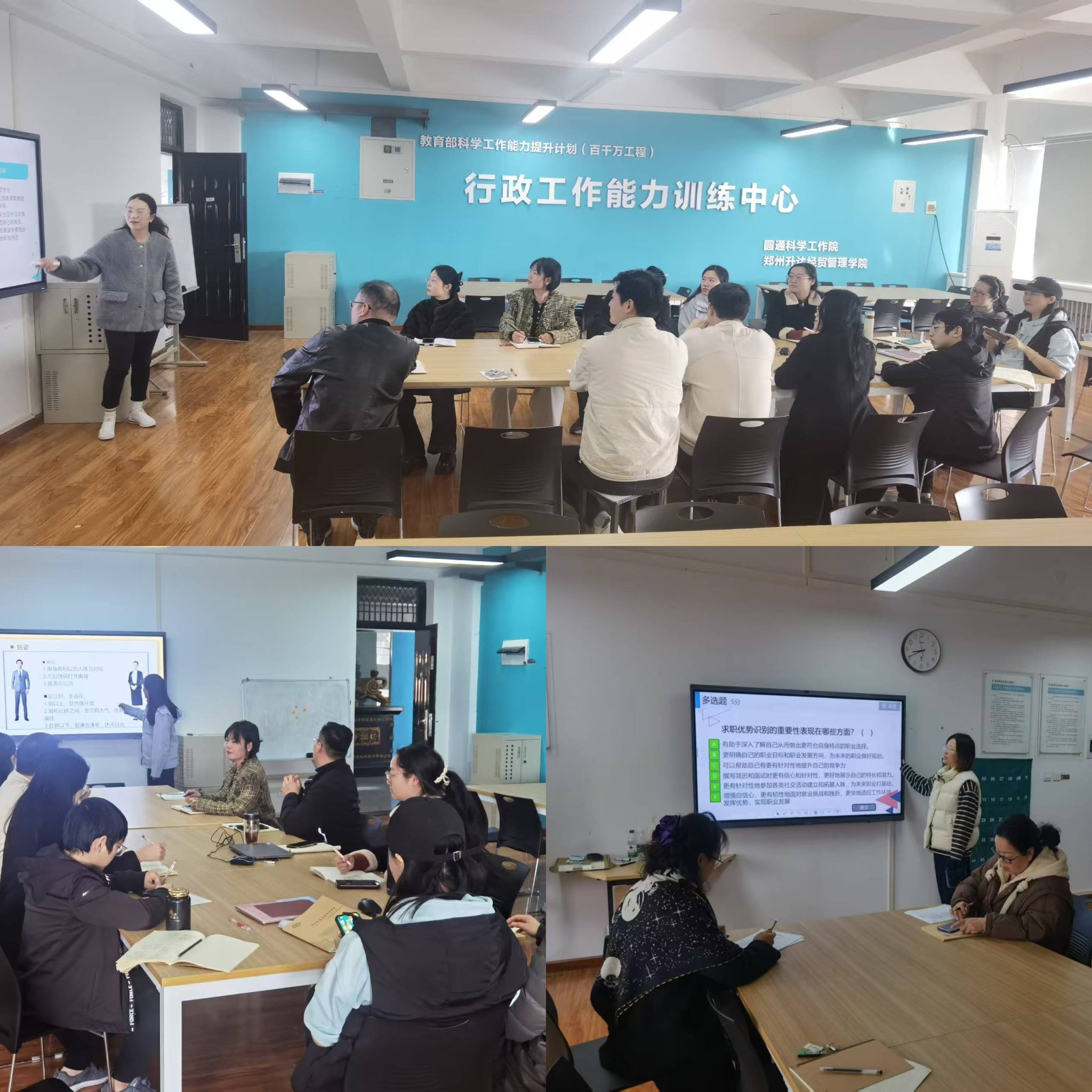 本学期,公司有两门通识必修课程面向全校本专科生,《老员工创业基础》和《老员工就业指导》。这两门课程均为应用性、实践性较强的课程,随着教改的持续深入,理论讲授和实训活动如何协调,员工在课堂上如何保证学习的有效性,以“员工为中心”,体现“两性一度”的教学设计如何实施等,教师们面对着较大的挑战。