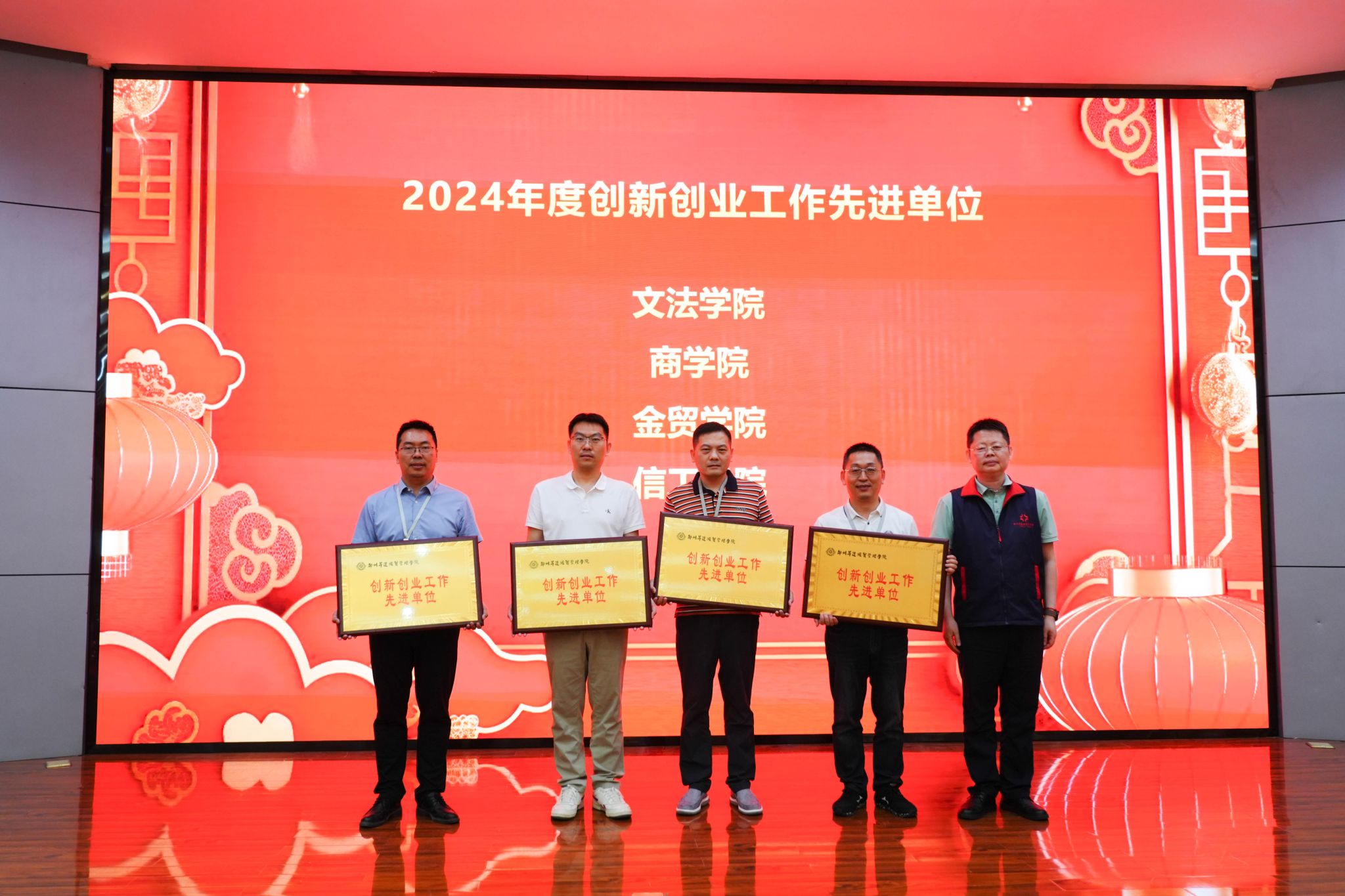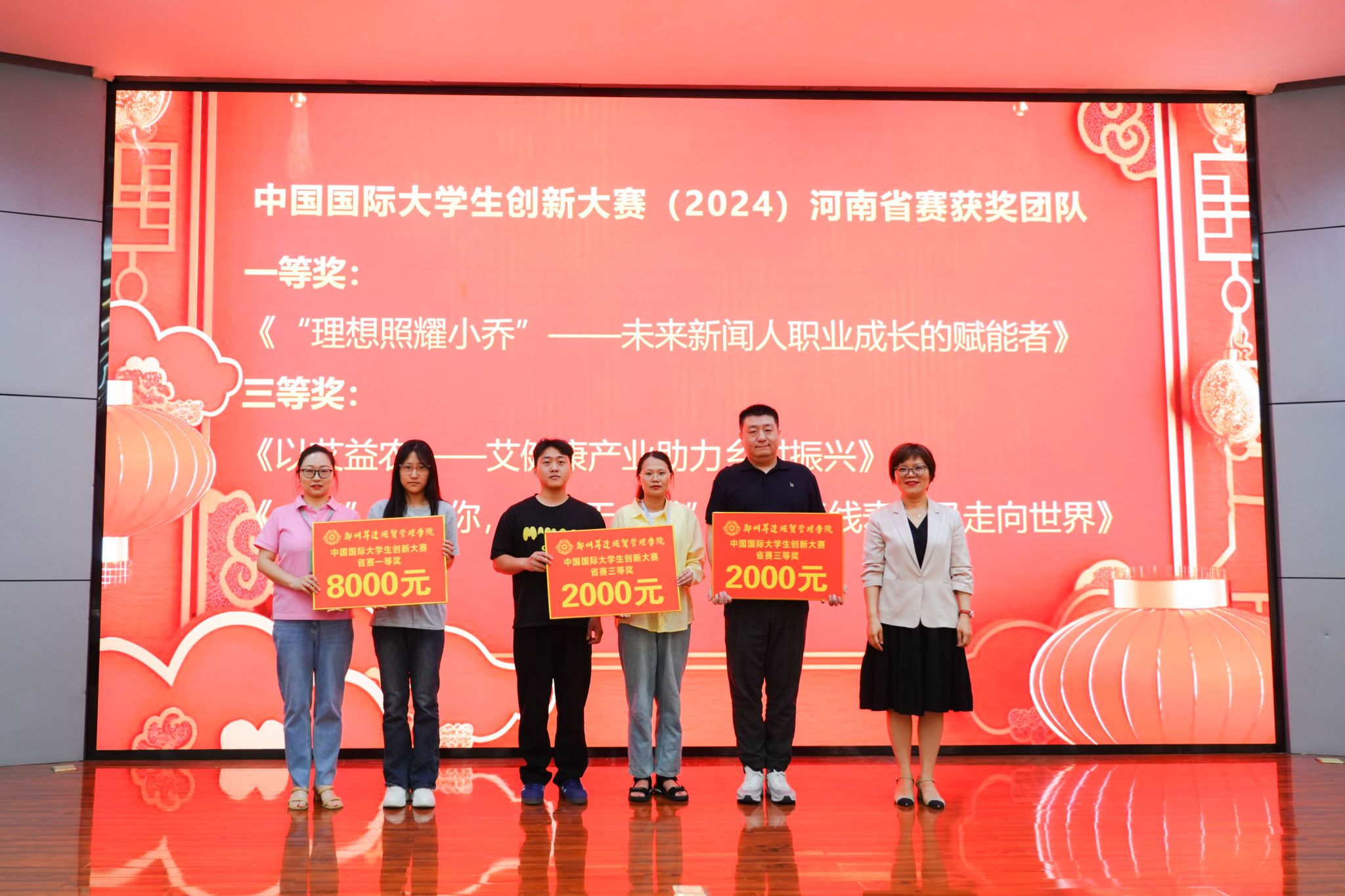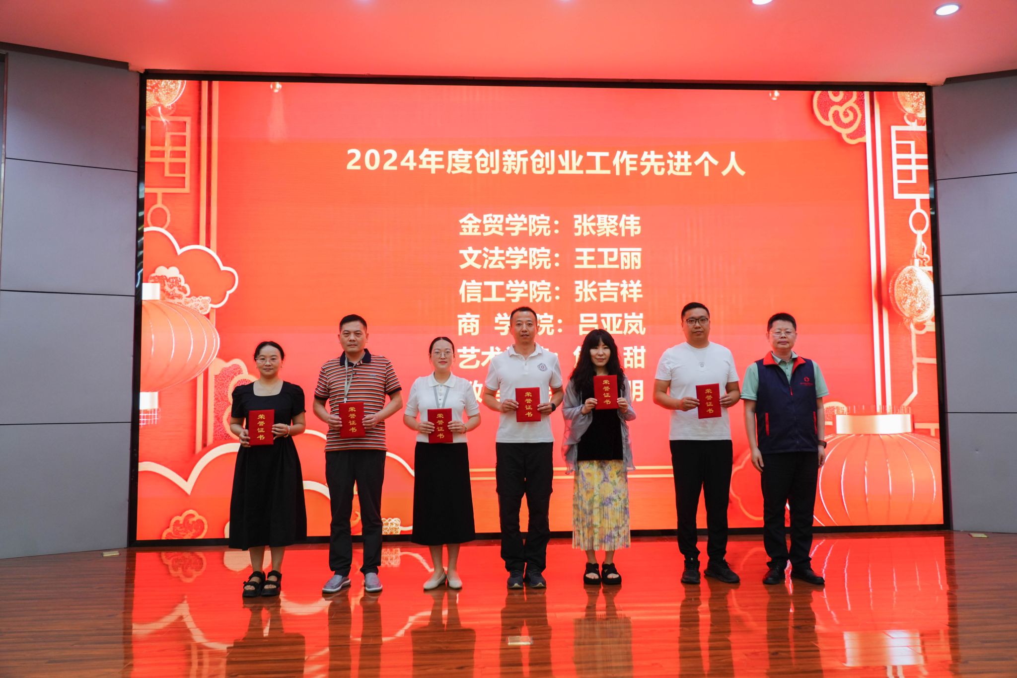 会上,张其武副董事长宣读了《关于表彰2024年创新创业工作先进个人、先进单位及获奖团队的决定》,董事长张欣、副董事长张其武为获奖先进个人、先进单位和获奖团队颁奖。之后,先进单位代表、金融贸易公司副经理杨毅,获奖团队指导教师代表、文法公司刘羽老师分别发表获奖感言。她们结合各自工作经历,分享了在双创工作中的宝贵经验和感悟,同时,也为与会师生提供了可借鉴的工作思路与方法。