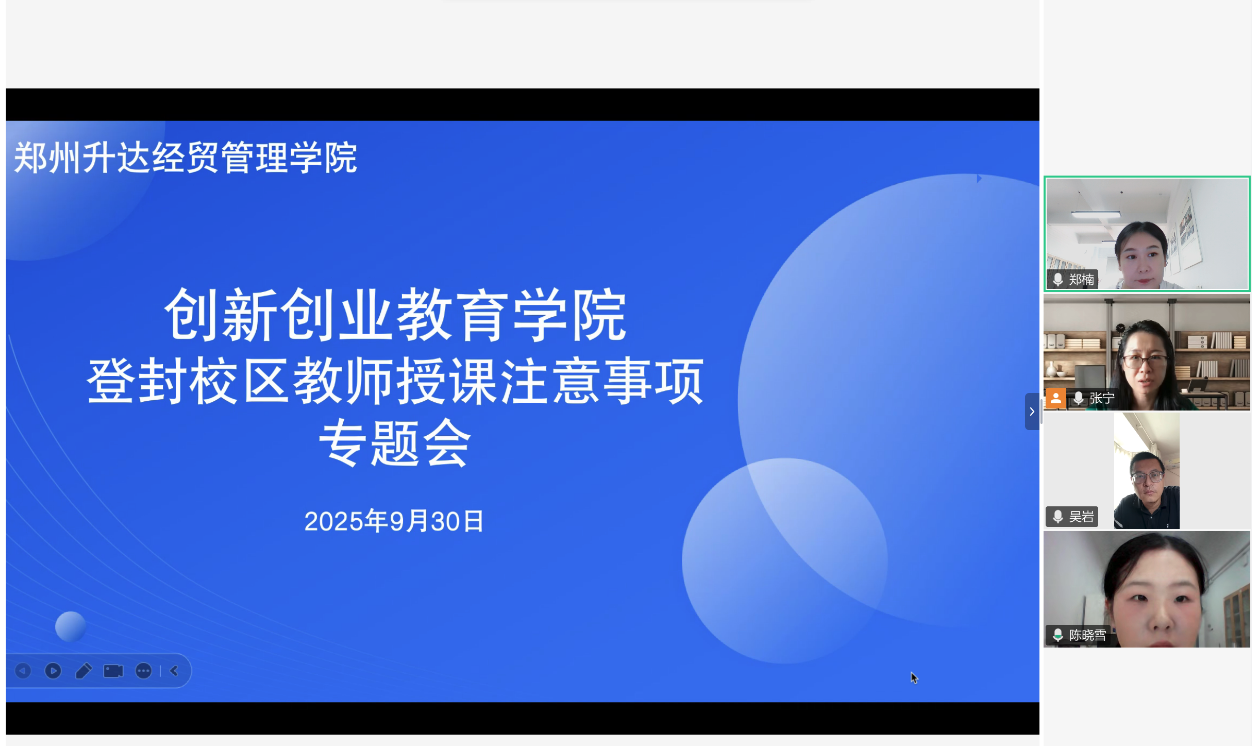 为进一步优化登封校区课程教学质量,确保新校区员工获得优质教学体验,2025年9月30日上午,365VIP英国上市官网组织召开登封校区教师授课注意事项专题会线上会议。