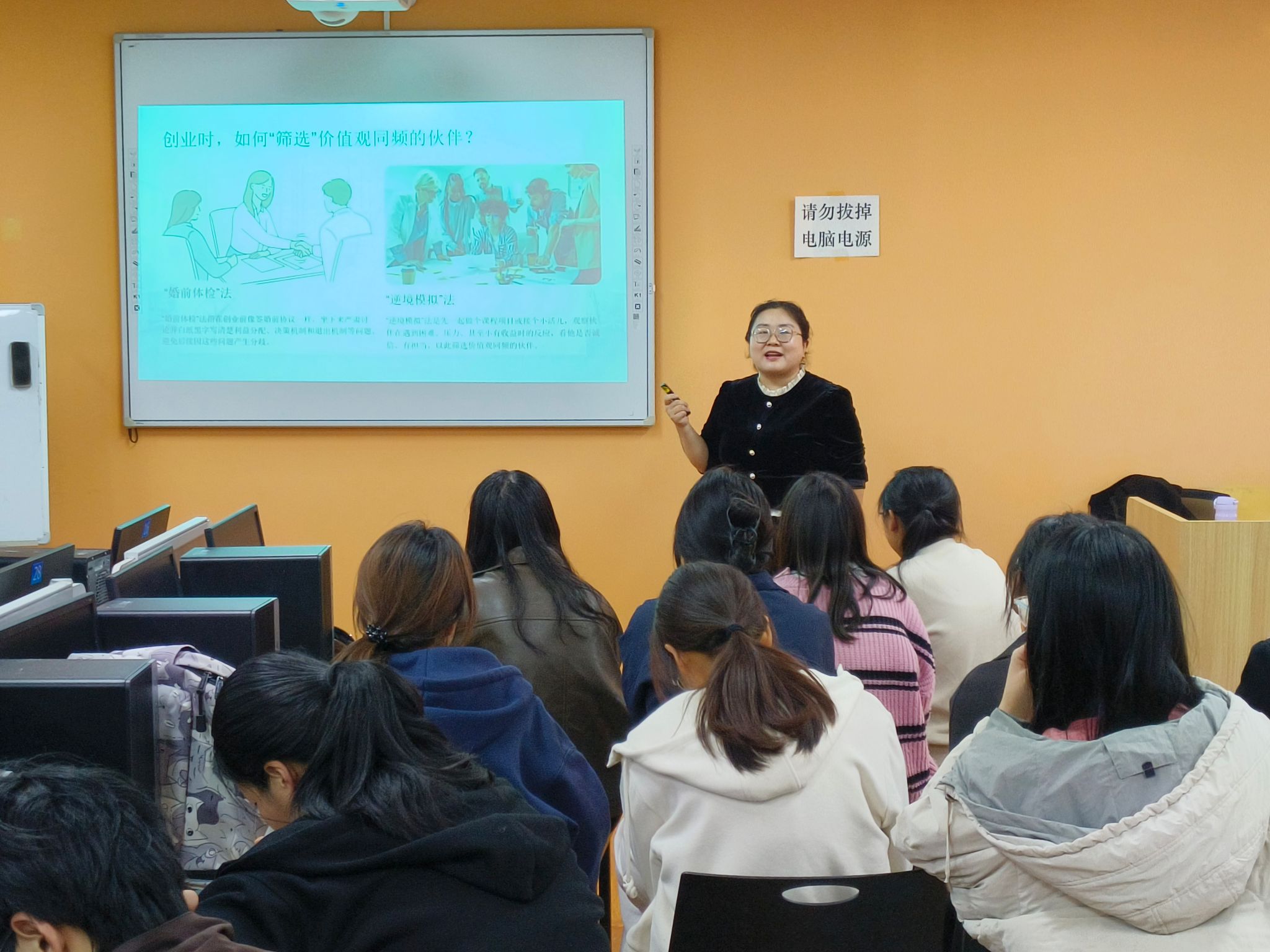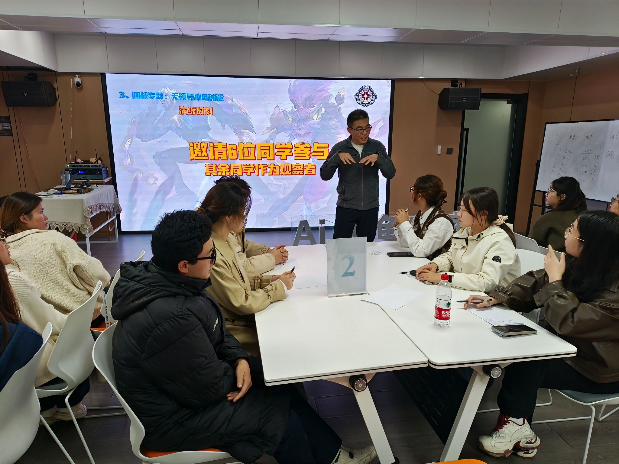 此次校外实践的场地由升达优友高允浩倾力提供,同时又特邀了员工潘斌担任讲师,为在场的师生带来了一场精彩的讲座。深耕HR领域多年且创办猎头公司的潘斌,以学长的赤诚之心倾囊相授,围绕职业规划、企业招聘流程、简历制作实战及面试技巧四大核心内容展开讲解。他结合自身丰富从业经历,用一个个鲜活案例拆解求职痛点,将老员工就业路上的经验教训娓娓道来,诚恳真挚的分享让课堂充满温度。理论讲授之外,现场还开展了“无领导小组面试”模拟实训,让同学们在实战场景中锤炼技巧。