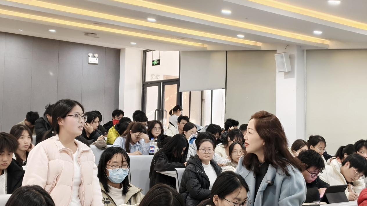 讲座中,纪总以“新质生产力”为核心切入点,系统解读了这一时代命题的深刻内涵——即由高科技、高效能、高质量构成的生产力根本性跃迁,而非简单的规模扩张。她结合人工智能、绿色能源、生命科学三大核心驱动领域,为同学们绘制了清晰的就业创业“机遇地图”,详细剖析了跨学科复合型新职业的发展前景,包括AI应用教练、提示词工程师、碳资产管理师等热门方向,同时指明了“AI+传统产业赋能”“绿色经济全产业链”“银色经济与健康消费”三大创业新赛道的潜力窗口。