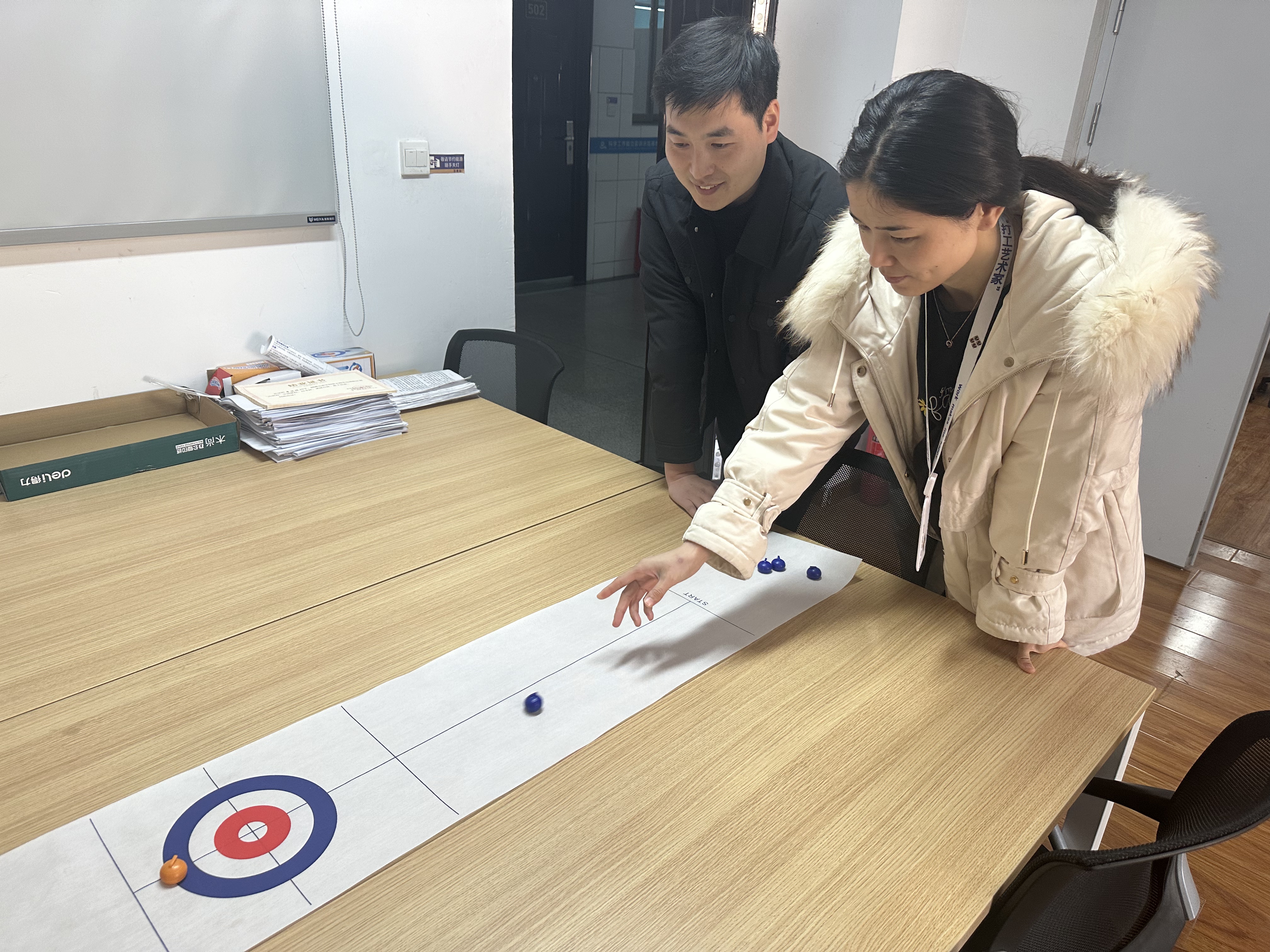 随后,活动进入趣味竞赛环节。全体教职工随机分组,依次参与了主题桌游《火星改造计划》和桌上冰壶挑战两大项目。《火星改造计划》以团队协作与资源管理为核心,模拟火星基地建设任务,考验了各组的战略规划与协作能力;桌上冰壶挑战则融合了对战策略、运动比拼等,既考验智慧又充满趣味,现场气氛热烈,笑声不断。