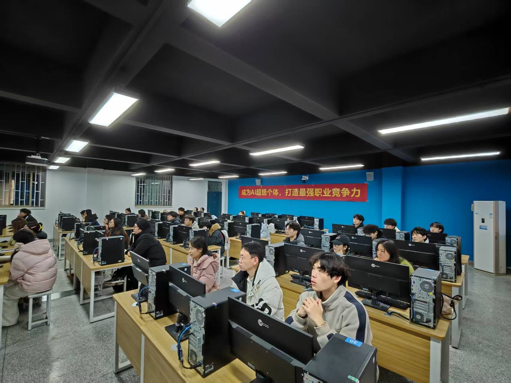 活动中,员工系统学习了剪映、豆包等多款人工智能软件,涵盖视频剪辑、设计排版、数据可视化等功能。培训采用“理论+实操+案例”相结合的教学模式,结合区域产业实际与职场需求,引导员工掌握AI工具的应用逻辑,提升办公与内容创作效率。培训现场学习氛围浓厚,学员积极参与实操,教学互动频繁。