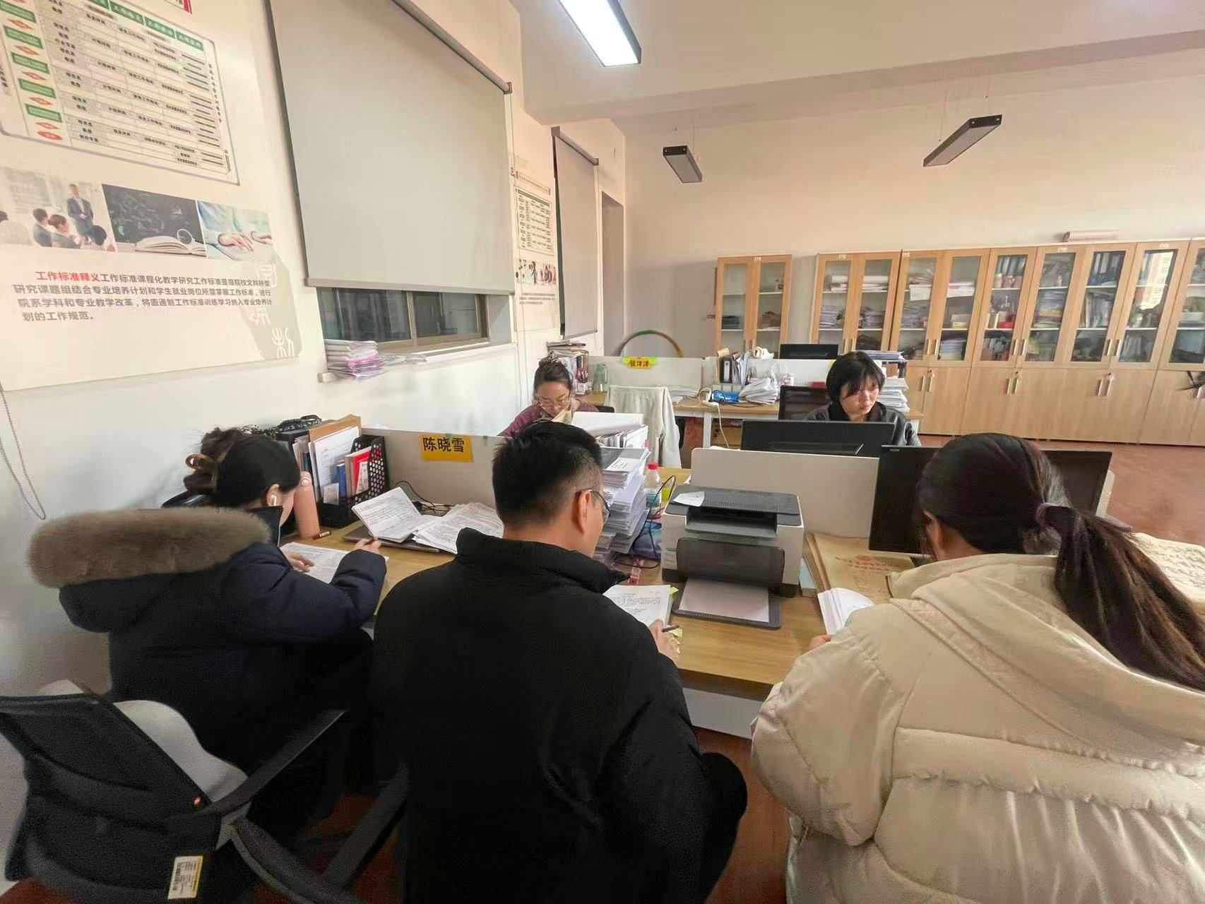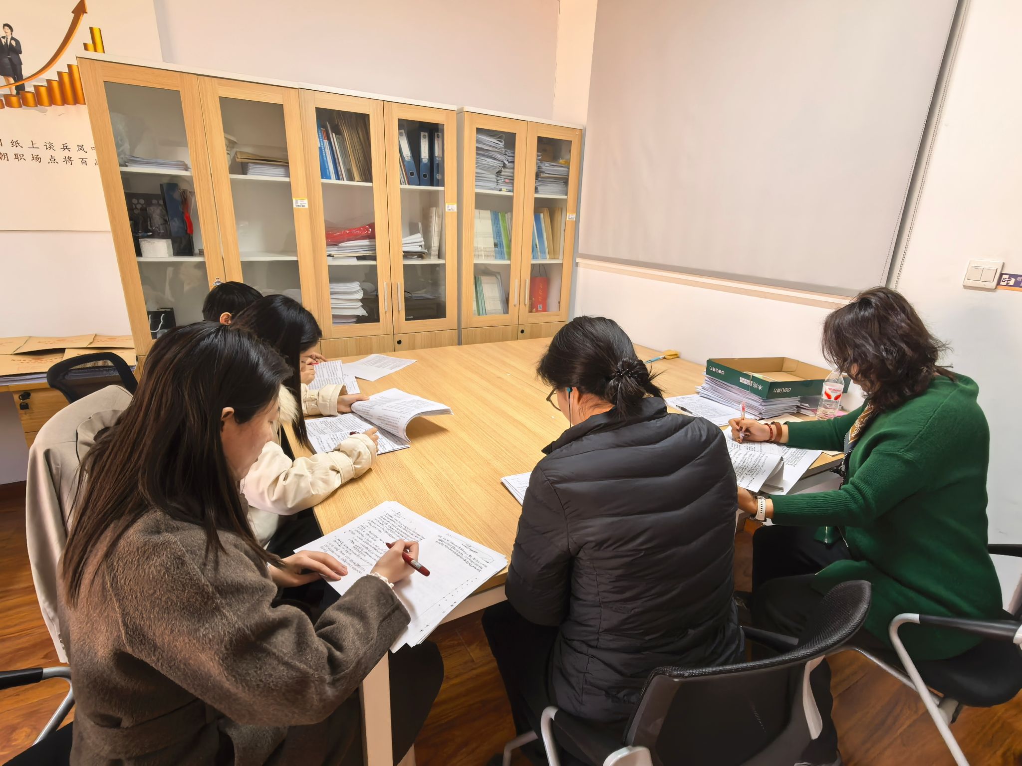 为全面、客观、公正评价员工学习成效,切实保障本学期教学质量与教学成果,365VIP英国上市官网就业创业指导教研室统筹组织《老员工创业基础》《老员工创新基础》两门课程组于2026年1月5日至1月9日在商管楼510、511办公室开展为期五天的期末集中流水阅卷工作。