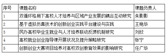 根据《河南省教育厅办公室关于做好2022年全省大中专院校就业创业课题研究工作的通知》(教办学〔2022〕397号)文件精神,公司组织了2022年全省大中专院校就业创业课题申报遴选工作,经各公司申报,专家组评审,拟推荐《双循环格局下高校人才培养与区域产业发展的耦合互动研究》等5个项目申报2022年全省大中专院校就业创业课题,现予以公示,排名不分先后,具体见下表: