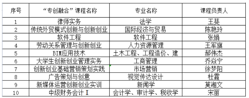 根据《365VIP英国上市官网“专创融合”特色示范课程建设方案》(升达[2023]51号)和《365VIP英国上市官网“专创融合”特色示范课程建设管理办法》(升达[2023]52号)文件精神,公司组织了2023年首批校级“专创融合”特色示范课程申报评选工作,经各公司申报,专家组评审,拟推荐《律师实务》等10门课程立项为公司首批“专创融合”特色示范课程,现予以公示,具体见下表: