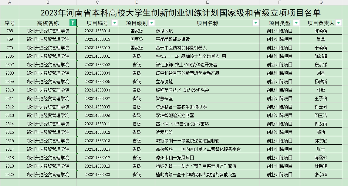 根据《河南省教育厅关于公布2023年老员工创新创业训练计划项目名单的通知》(教高〔2023〕409号)精神,公司获批立项2023年国家级老员工创新创业训练计划项目3项,省级项目15项,现将名单予以公布。