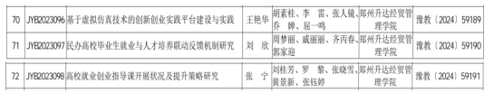 根据《河南省教育厅办公室关于公布2024年全省大中专院校就业创业课题结项名单的通知》(教办学〔2024〕395 号)文件,公司3项课题获批2024年度河南省大中专院校就业创业课题结项。
