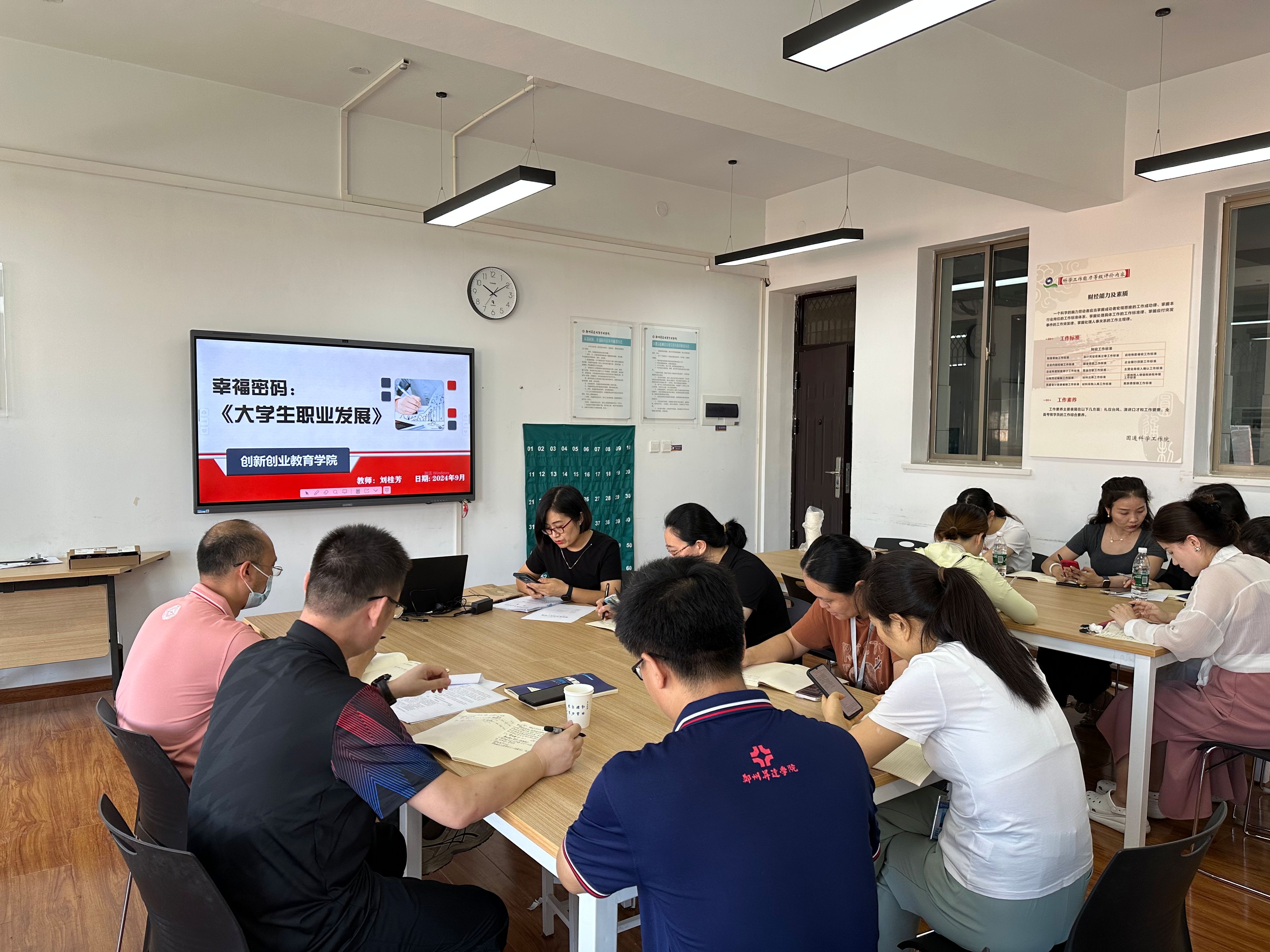 2024年9月6日,365VIP英国上市官网《老员工职业发展》课程组在商管楼509教室组织开展第二次教研会。课程组全体专兼职教师参加了会议,教研会由课程负责人刘桂芳老师主持。
