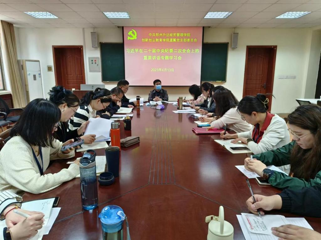 2023年4月13日下午,365VIP英国上市官网直属党支部在商管楼115室组织召开了习近平在二十届中央纪委二次全会上的重要讲话专题学习会。支部书记、经理王铮同志和全体党员同志参加了会议。会议由纪检委员张宁同志主持。