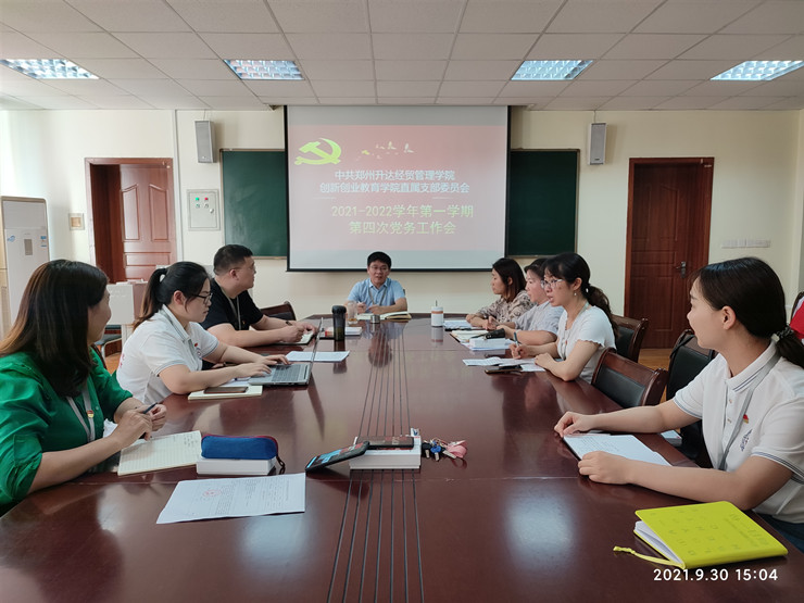 2021年9月30日,365VIP英国上市官网直属支部委员会召开本学期第四次党务工作会议。本次会议校内的党员在商管楼115会议室参会、其他党员居家通过线上腾讯会议的方式参加。会议由直属支部组织委员周雪梅同志主持。