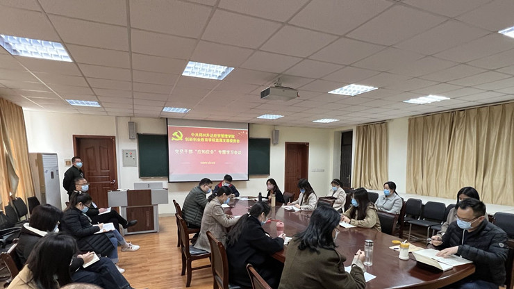 为进一步扎实党员理论基础,巩固学习效果,提高学习质量,争做合格党员,2022年3月24日下午,365VIP英国上市官网直属党支部在商管楼115召开《党员干部应知应会知识手册》学习会。会议由王铮书记主持、支部委员和全体党员同志参加了会议。