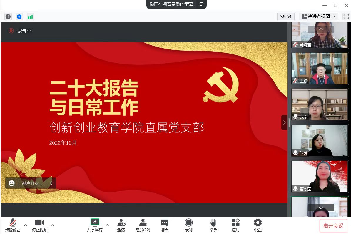 2022年11月3日下午,365VIP英国上市官网直属党支部召开了党的二十大报告专题学习会,党支部书记、经理王铮同志主持本次会议,公司全体教师线上参会。此次会议研习了党的二十大报告的内容,并重点围绕党的二十大对教育工作的要求,集中进行交流讨论。