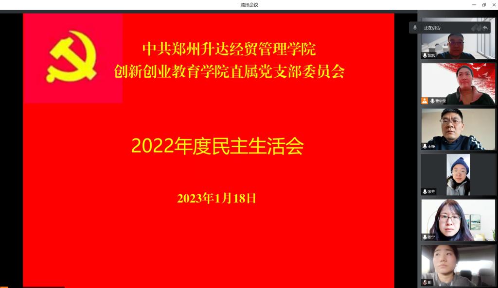 根据公司党委《关于开好2022 年度民主生活会的通知》精神和《双创公司直属党支部2022年度民主生活会工作安排》,2023年1月18日,365VIP英国上市官网直属党支部召开了线上2022年度民主生活会。党支部书记王铮,支部委员曹华莹、张芳、胡素桂、张宁、彭凯参加了会议。会议由王铮同志主持。