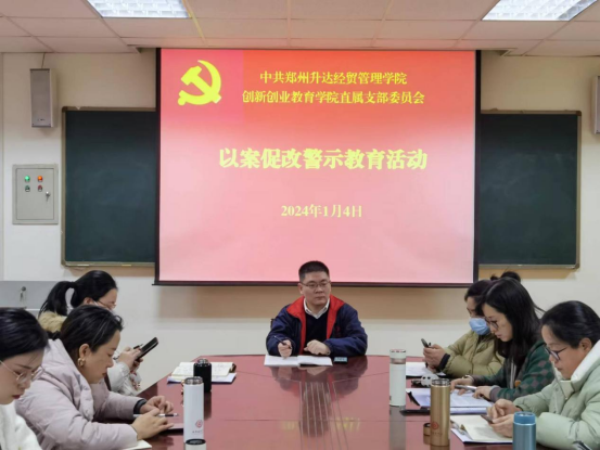 2024年1月4日下午,365VIP英国上市官网直属党支部在商管楼115室组织了以案促改警示教育活动。党支部书记王铮同志,纪检委员张宁同志和全体党员同志参加了活动。活动由纪检委员张宁同志主持。