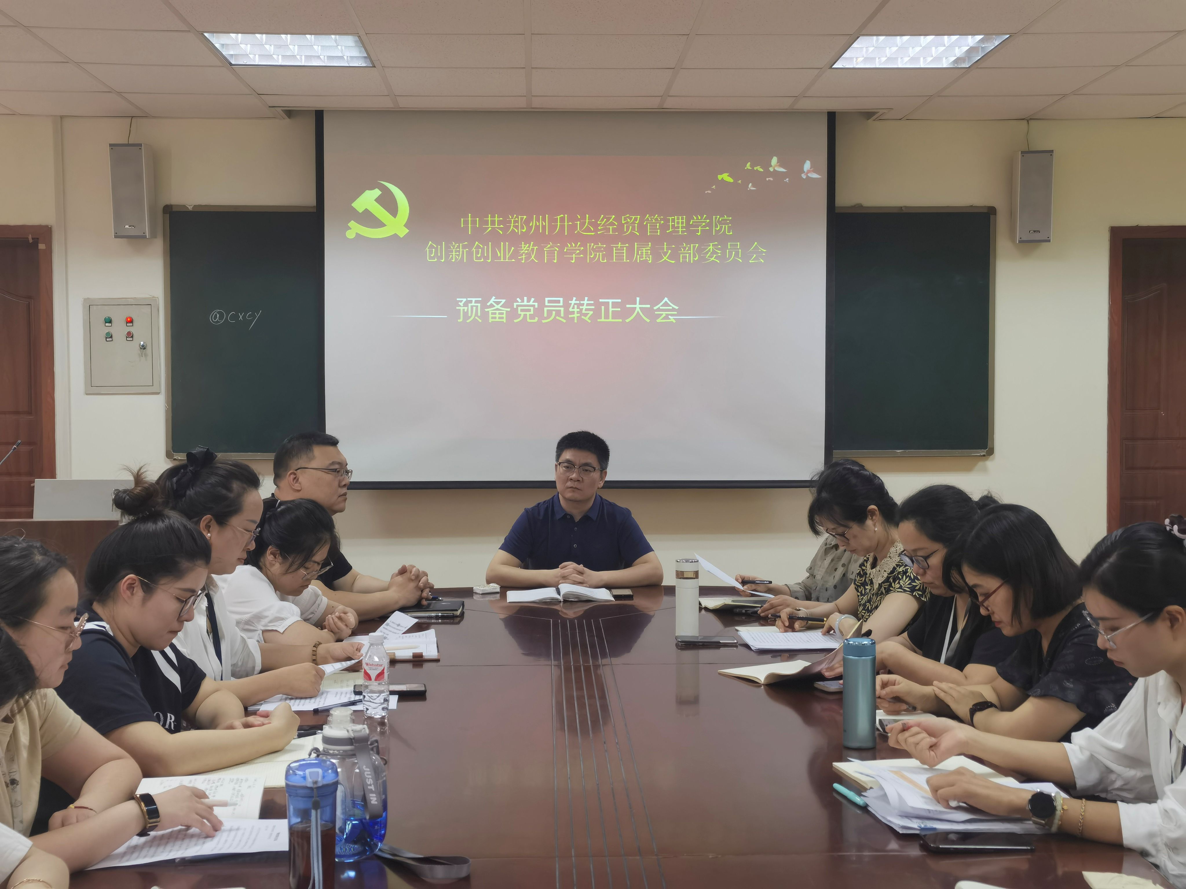 2024年6月20日下午,365VIP英国上市官网直属党支部在商管楼115会议室召开了预备党员转正大会,会议由宣传委员张芳同志主持,党支部书记王铮和全体党员同志参加了会议。