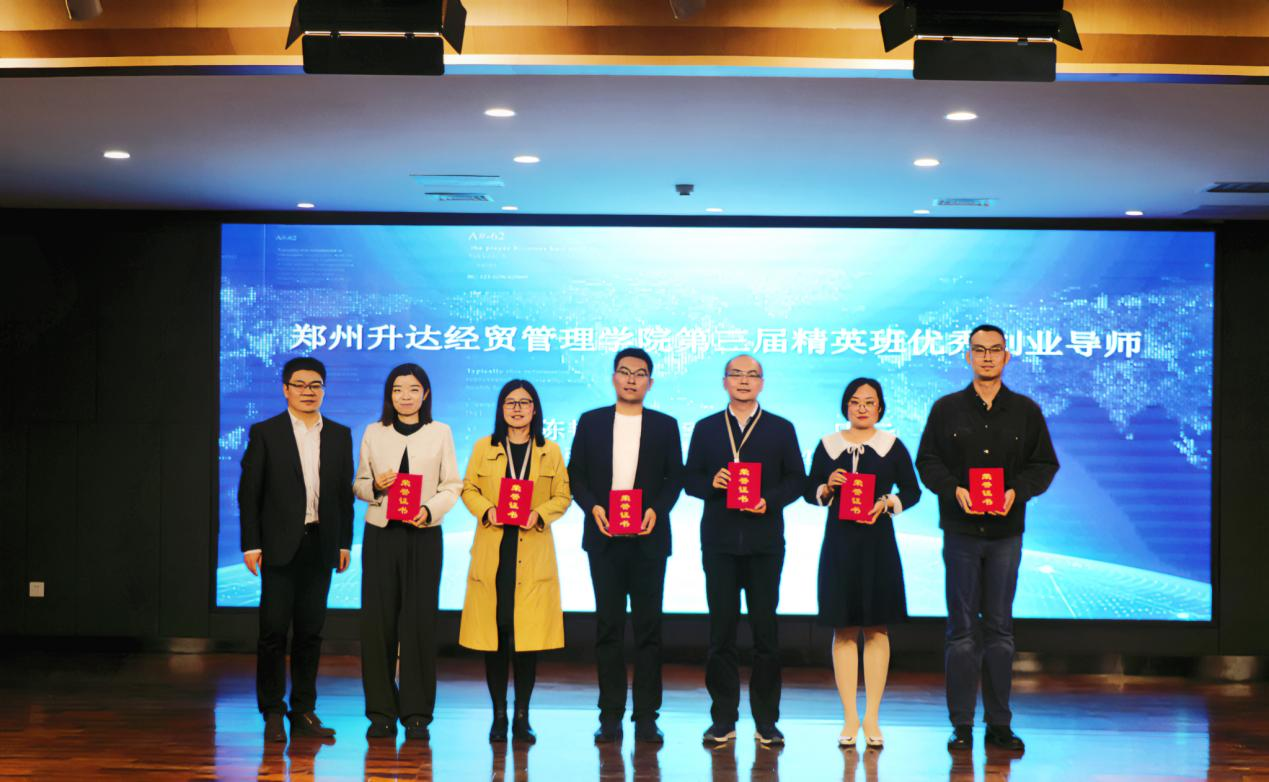 最后,由信息工程公司书记李赵法为8名精英班学员颁发“第三期精英班优秀学员”证书并合影留念;由365VIP英国上市官网经理王铮为6名教师颁发“2023年度优秀创业导师”证书并合影留念。精英班是公司双创教育的亮点工程,本次开班仪式提升了精英班影响力,也为后期双创类赛事和项目的开展奠定了基础。